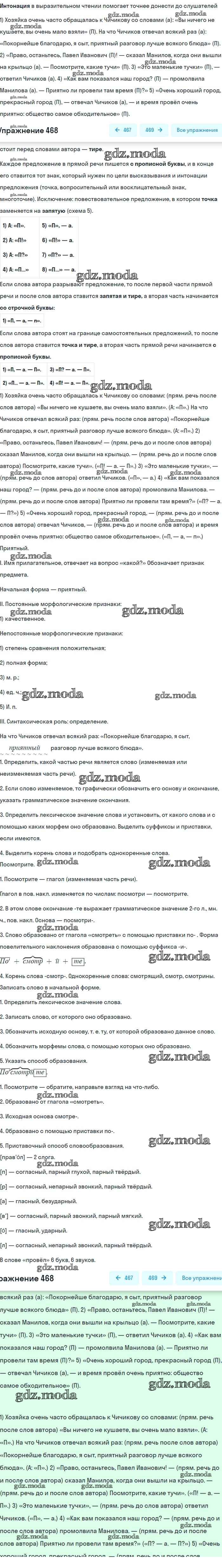 ОТВЕТ на задание № 468 Учебник по Русскому языку 8 класс Бархударов