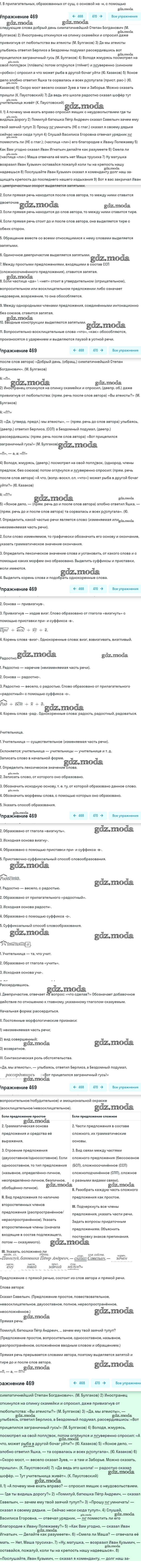 ОТВЕТ на задание № 469 Учебник по Русскому языку 8 класс Бархударов
