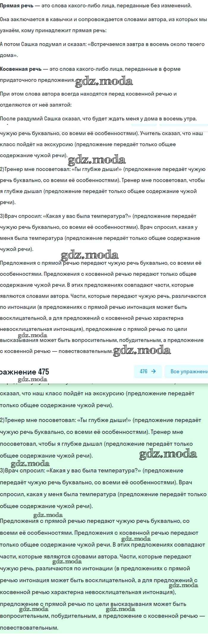 ОТВЕТ на задание № 475 Учебник по Русскому языку 8 класс Бархударов