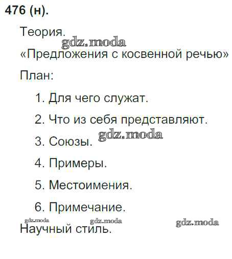 ГДЗ решение к заданию № 476 Русский язык 8 класс Бархударов Просвещение 2018 ФГОС бесплатно на гдз.мода!