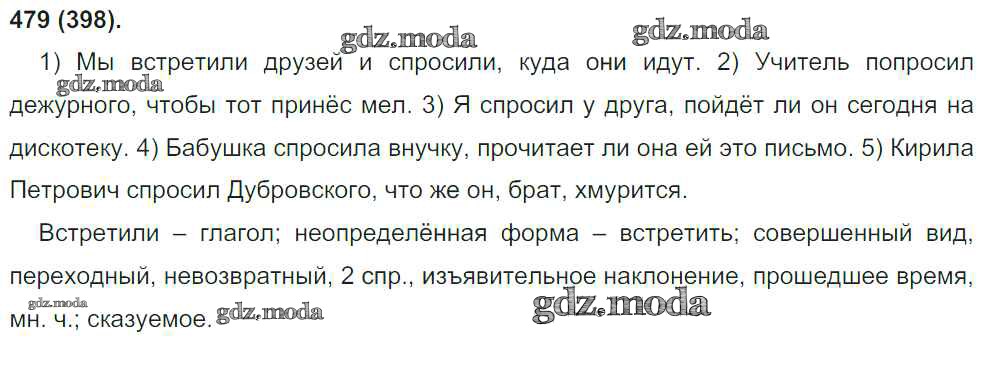 ОТВЕТ на задание № 479 Учебник по Русскому языку 8 класс Бархударов