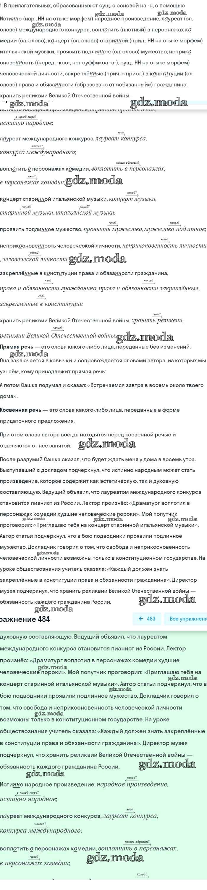 ГДЗ решение к заданию № 484 Русский язык 8 класс Бархударов С.Г. Просвещение 2018 ФГОС бесплатно на гдз.мода!