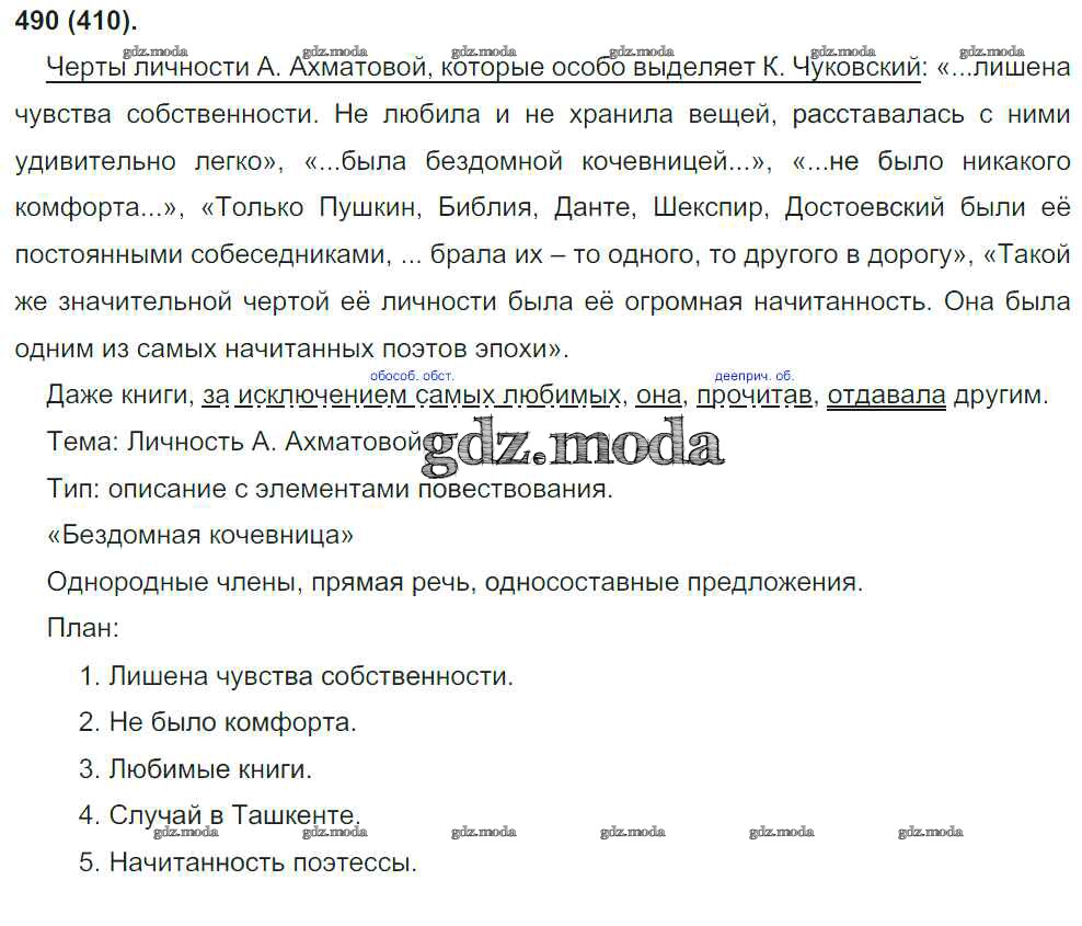 ГДЗ решение к заданию № 490 Русский язык 8 класс Бархударов Просвещение 2018 ФГОС бесплатно на гдз.мода!