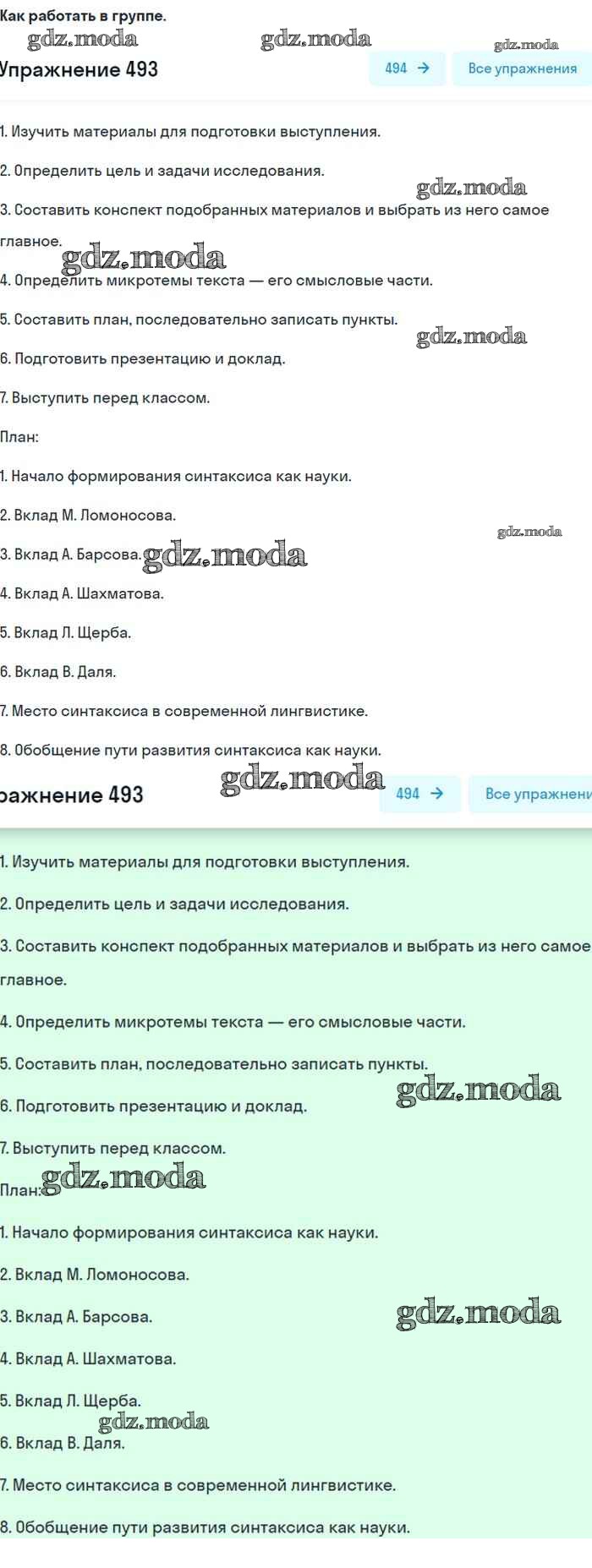 ОТВЕТ на задание № 493 Учебник по Русскому языку 8 класс Бархударов