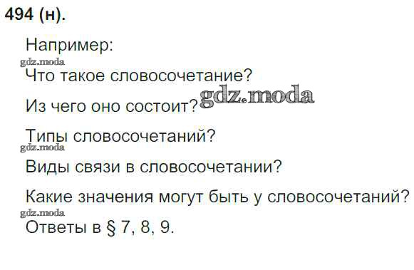 ГДЗ решение к заданию № 494 Русский язык 8 класс Бархударов Просвещение 2018 ФГОС бесплатно на гдз.мода!