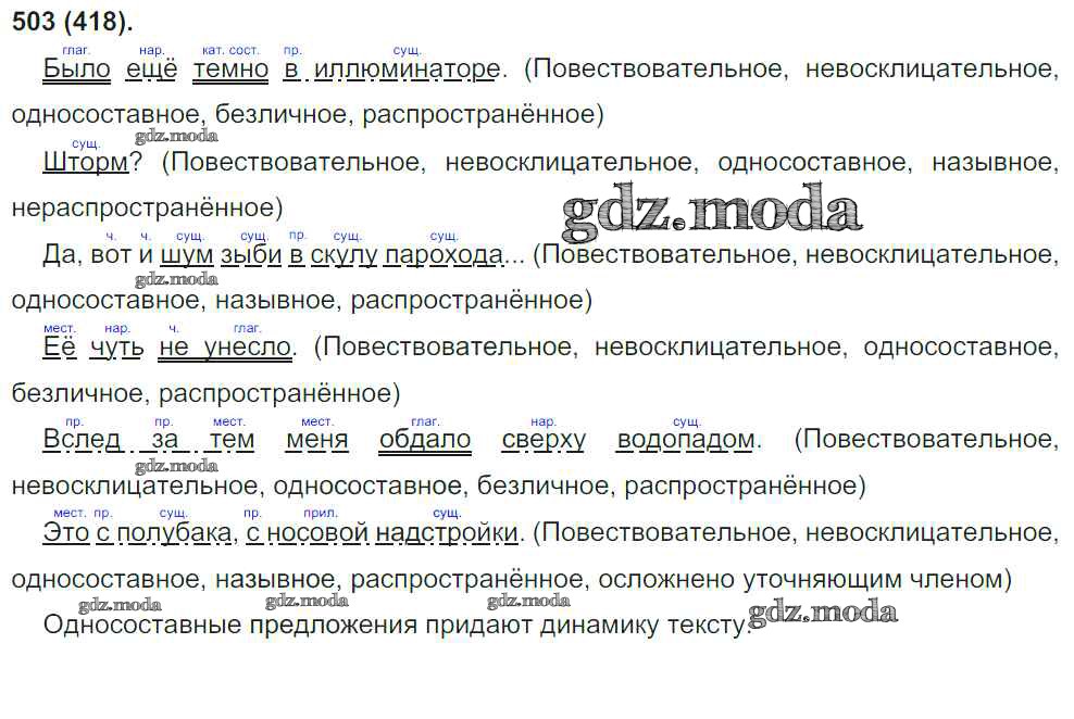 ОТВЕТ на задание № 503 Учебник по Русскому языку 8 класс Бархударов
