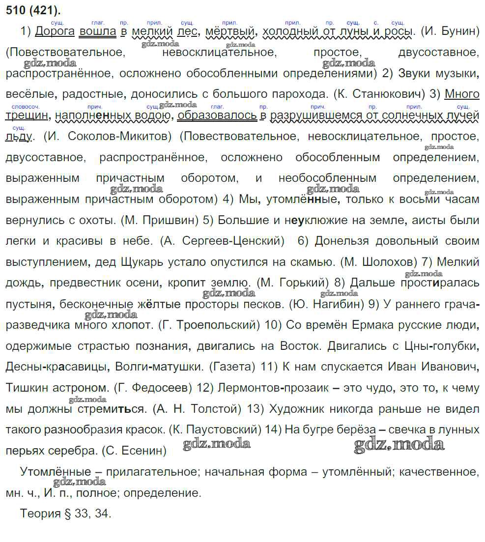 ГДЗ решение к заданию № 510 Русский язык 8 класс Бархударов Просвещение 2018 ФГОС бесплатно на гдз.мода!