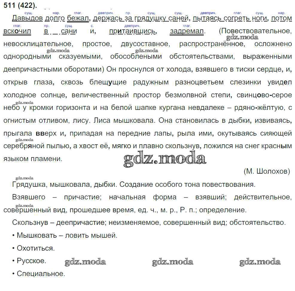 ОТВЕТ на задание № 511 Учебник по Русскому языку 8 класс Бархударов