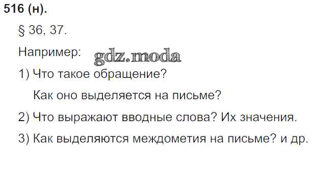 ОТВЕТ на задание № 516 Учебник по Русскому языку 8 класс Бархударов