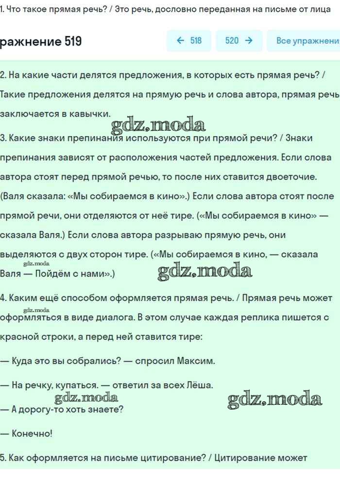 ОТВЕТ на задание № 519 Учебник по Русскому языку 8 класс Бархударов