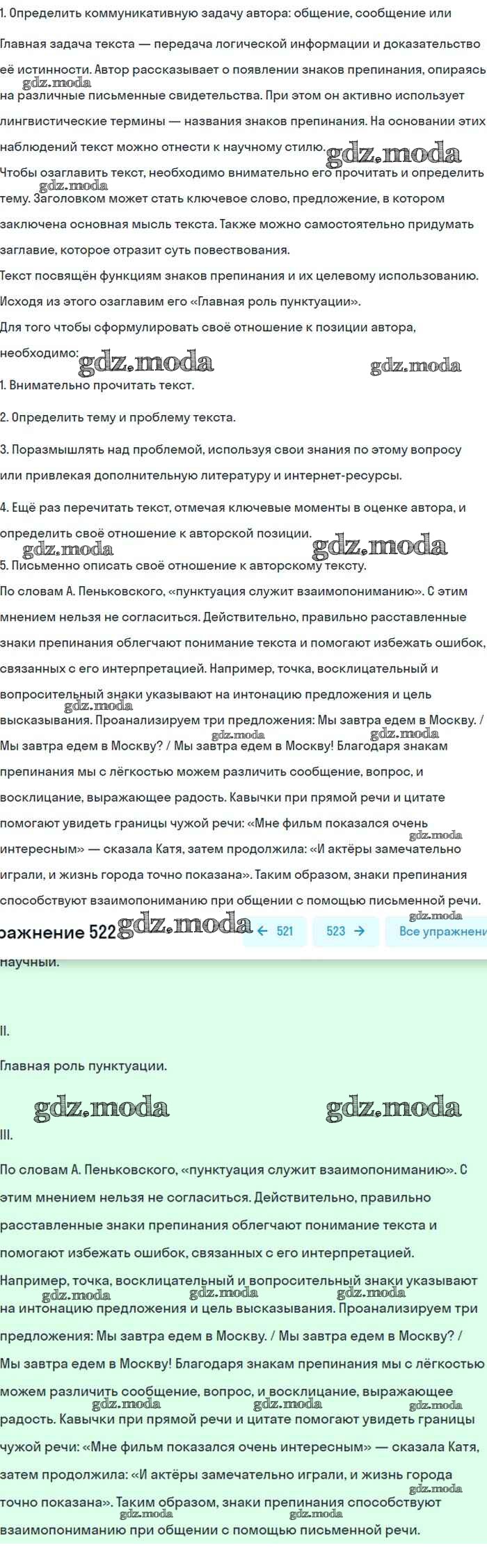 ОТВЕТ на задание № 522 Учебник по Русскому языку 8 класс Бархударов