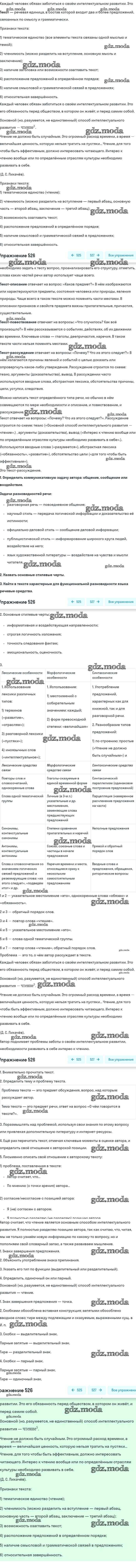 ОТВЕТ на задание № 526 Учебник по Русскому языку 8 класс Бархударов