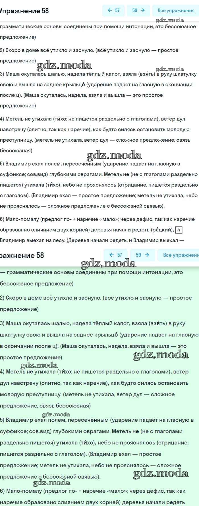 ОТВЕТ на задание № 58 Учебник по Русскому языку 8 класс Бархударов