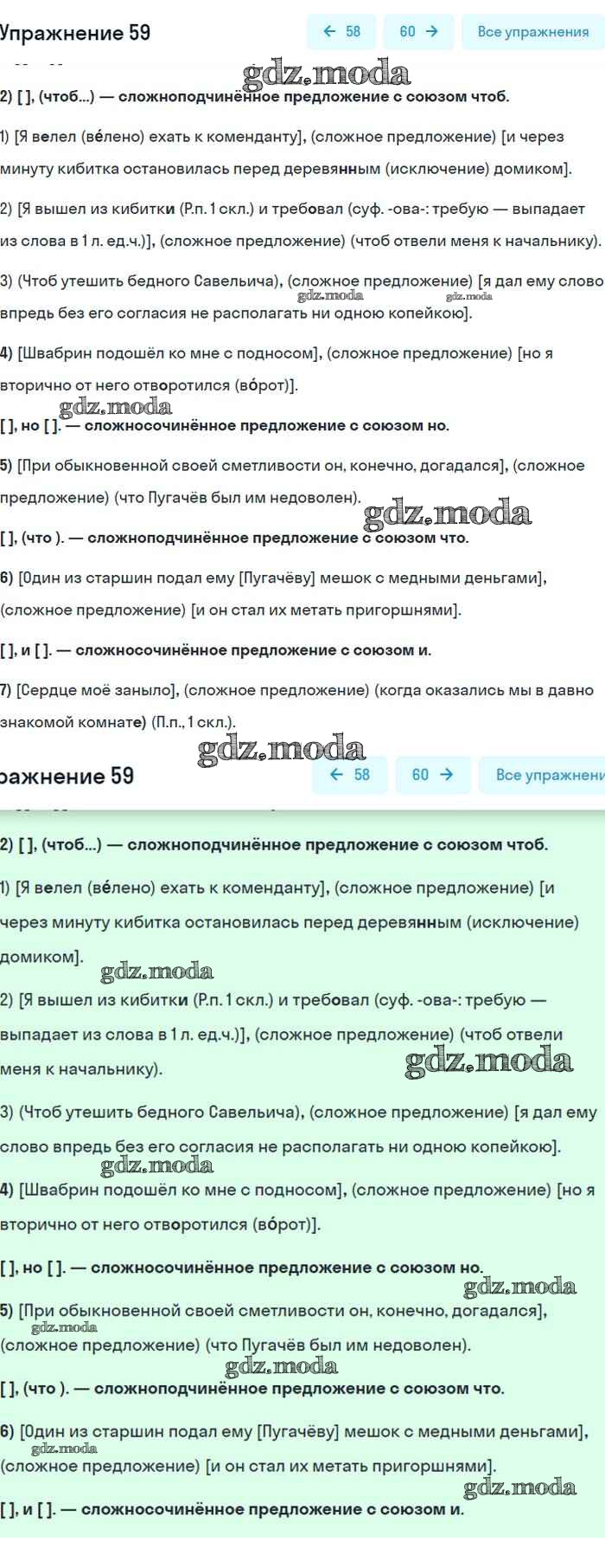 ГДЗ решение к заданию № 59 Русский язык 8 класс Бархударов С.Г. Просвещение 2018 ФГОС бесплатно на гдз.мода!