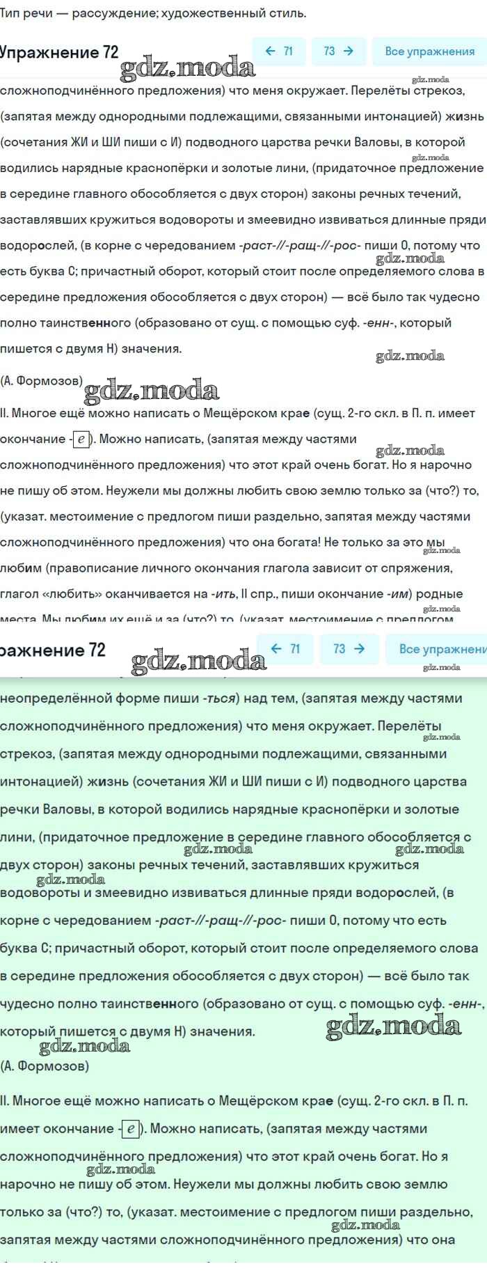 ГДЗ решение к заданию № 72 Русский язык 8 класс Бархударов С.Г. Просвещение 2018 ФГОС бесплатно на гдз.мода!