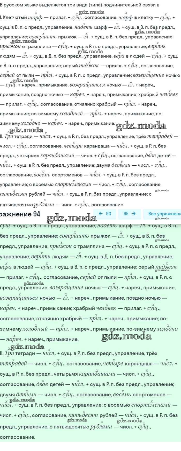 ГДЗ решение к заданию № 94 Русский язык 8 класс Бархударов С.Г. Просвещение 2018 ФГОС бесплатно на гдз.мода!