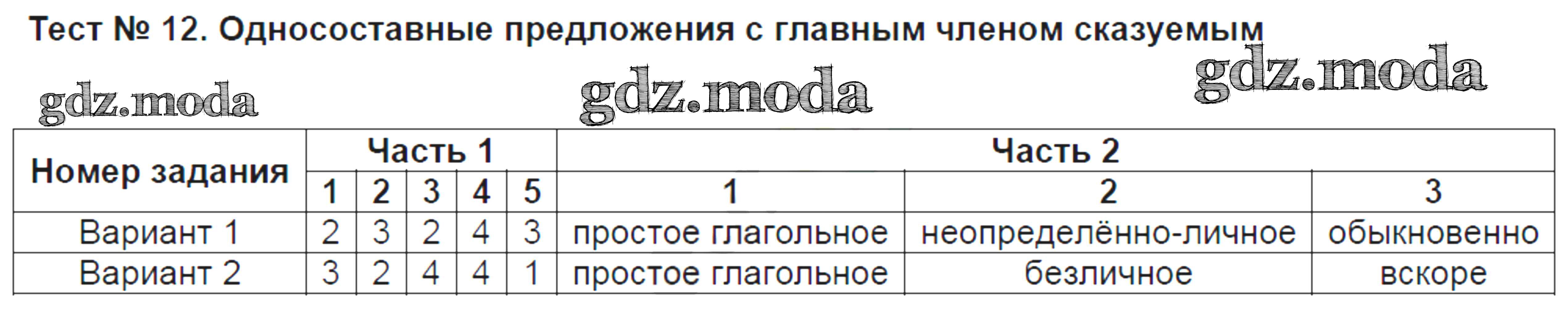 ОТВЕТ на задание № 12 Контрольно-измерительные материалы (КИМ) по Русскому языку 8 класс Никулина