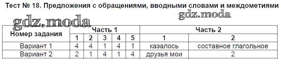 ОТВЕТ на задание № 18 Контрольно-измерительные материалы (КИМ) по Русскому языку 8 класс Никулина