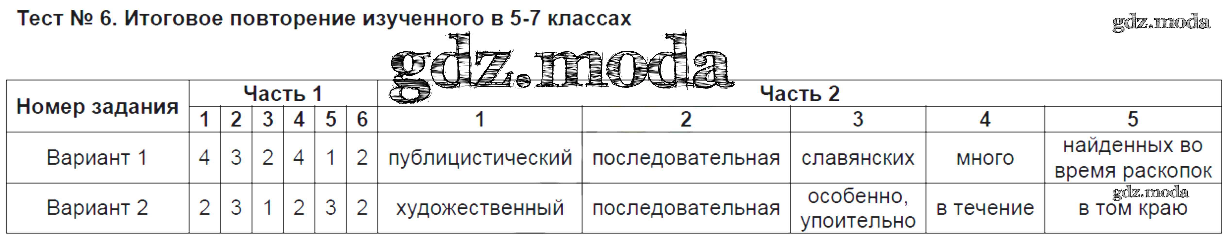 ОТВЕТ на задание № 6 Контрольно-измерительные материалы (КИМ) по Русскому языку 8 класс Никулина