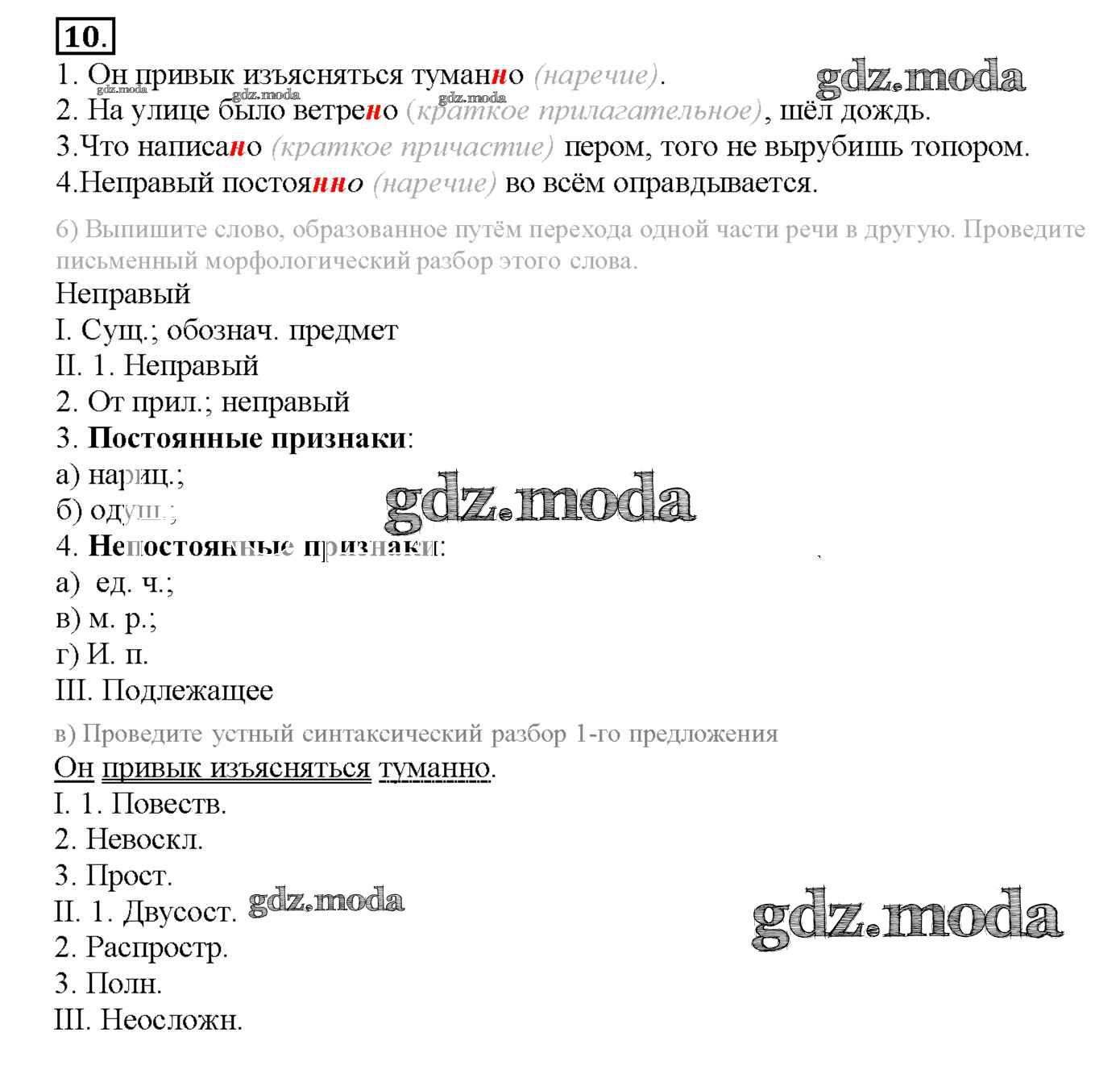 ОТВЕТ на задание № 10 Рабочая тетрадь по Русскому языку 8 класс Львов УМК