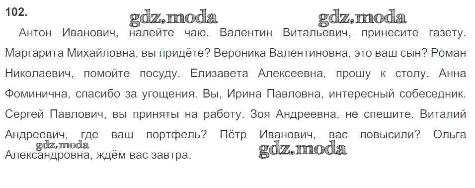 ОТВЕТ на задание № 102 Рабочая тетрадь по Русскому языку 8 класс Львов УМК