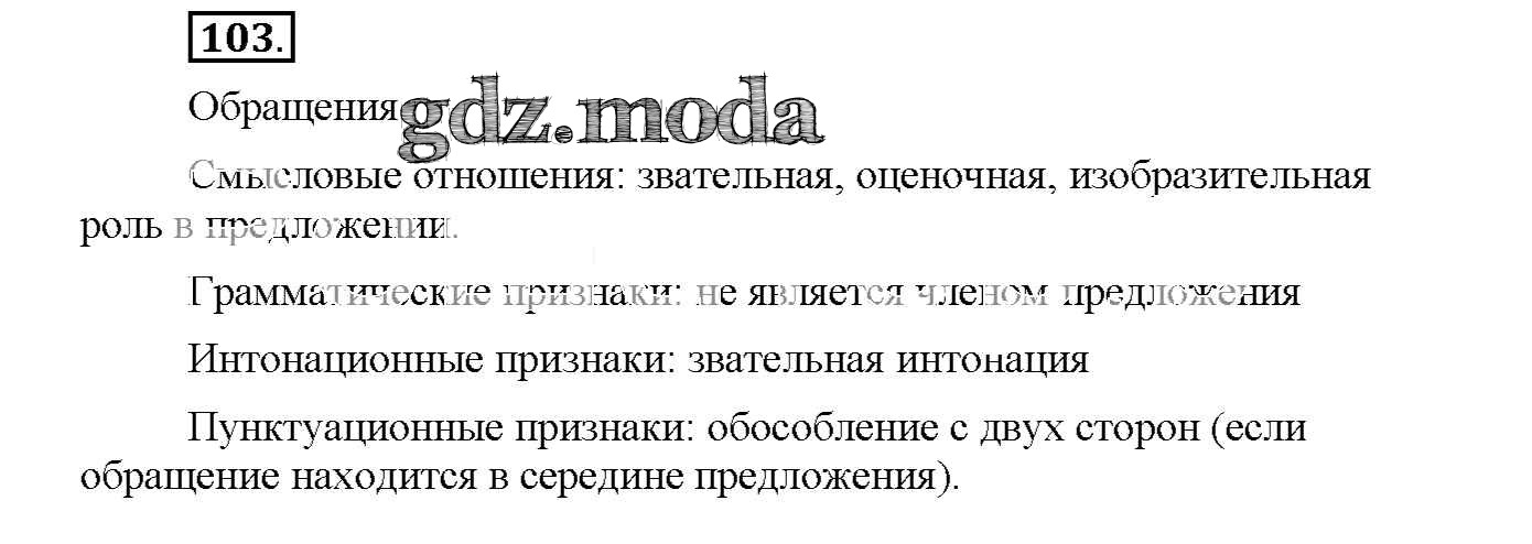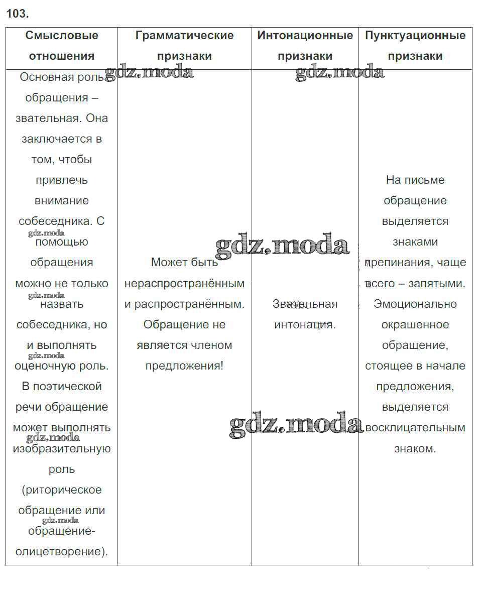 ОТВЕТ на задание № 103 Рабочая тетрадь по Русскому языку 8 класс Львов УМК