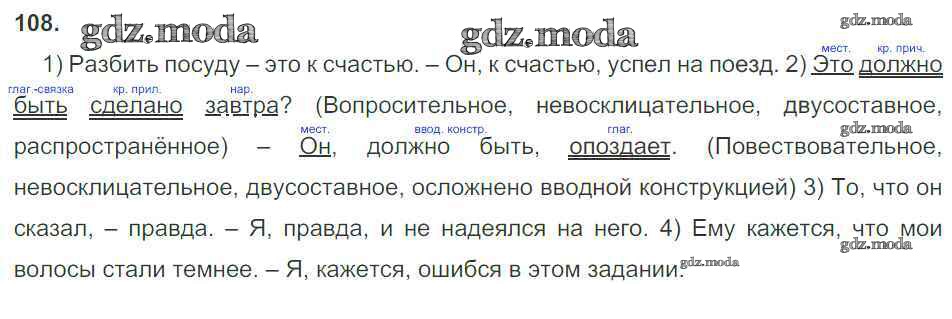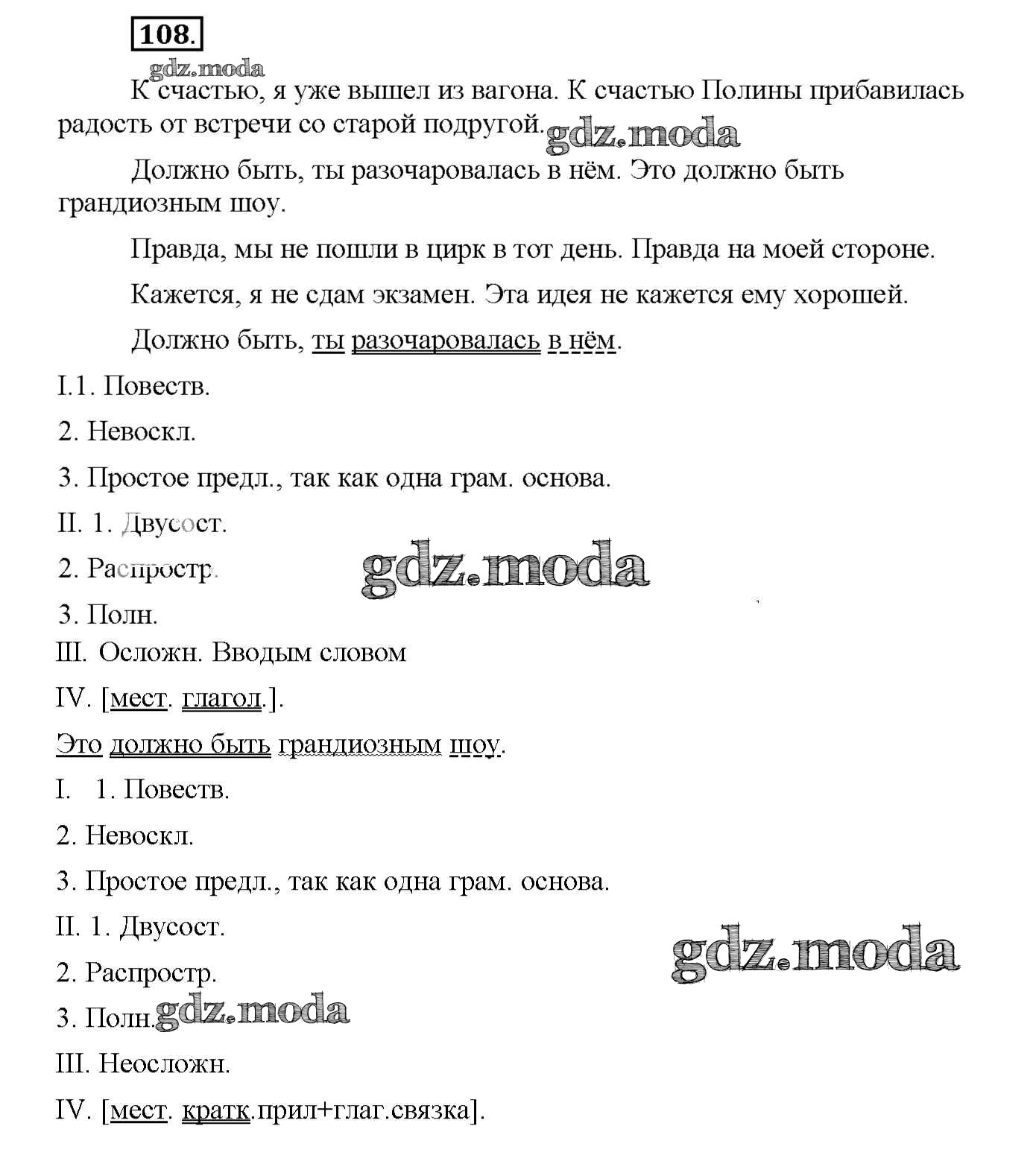 ГДЗ решение к заданию № 108 Русский язык 8 класс рабочая тетрадь Львов В.В. (к уч. Разумовской) Экзамен 2016 ФГОС бесплатно на гдз.мода!