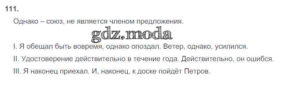 ОТВЕТ на задание № 111 Рабочая тетрадь по Русскому языку 8 класс Львов УМК