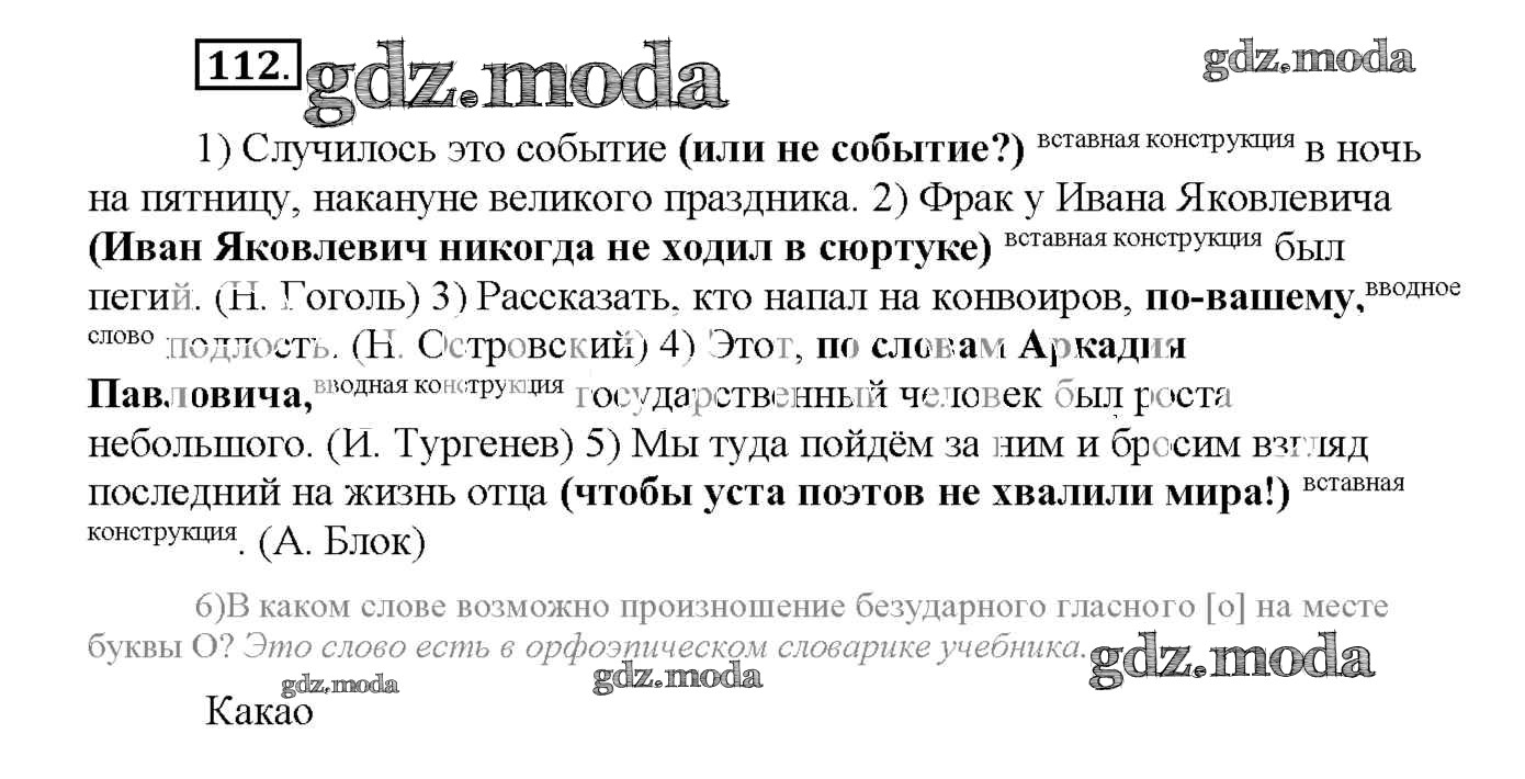 ГДЗ решение к заданию № 112 Русский язык 8 класс рабочая тетрадь Львов В.В. (к уч. Разумовской) Экзамен 2016 ФГОС бесплатно на гдз.мода!