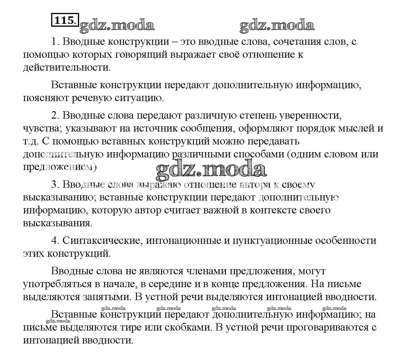 ОТВЕТ на задание № 115 Рабочая тетрадь по Русскому языку 8 класс Львов УМК