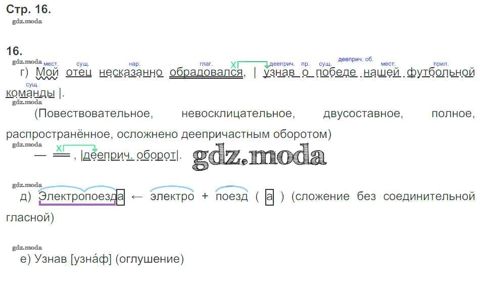 ГДЗ решение к заданию № 16 Русский язык 8 класс рабочая тетрадь Львов В.В. (к уч. Разумовской) Экзамен 2016 ФГОС бесплатно на гдз.мода!