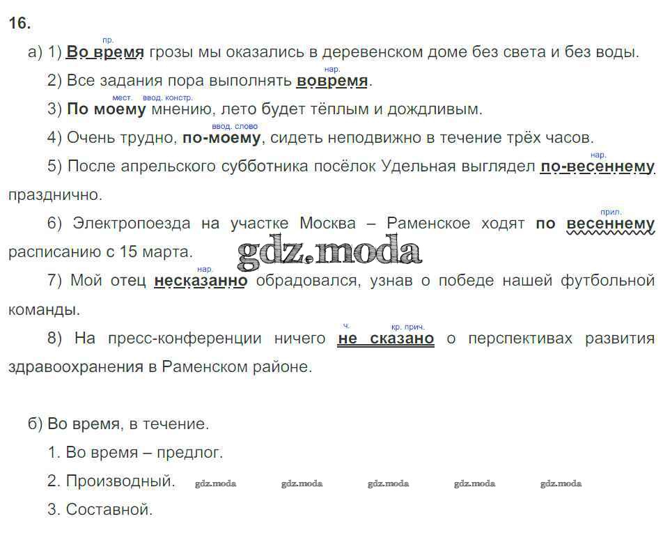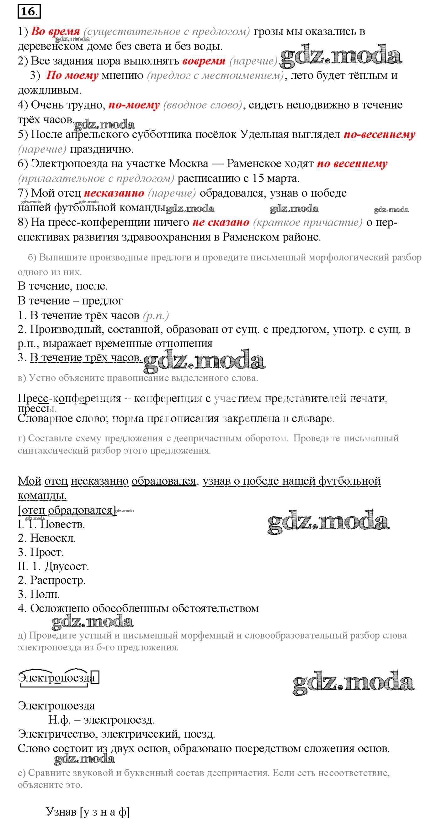 ОТВЕТ на задание № 16 Рабочая тетрадь по Русскому языку 8 класс Львов УМК