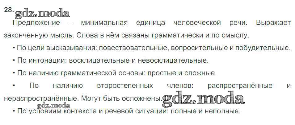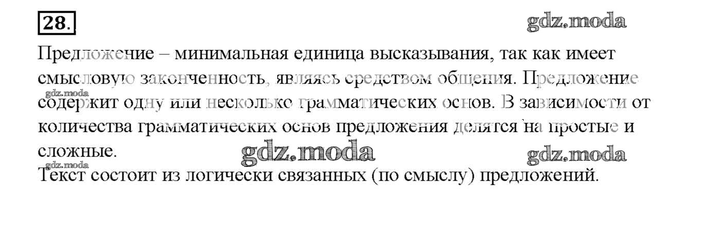ОТВЕТ на задание № 28 Рабочая тетрадь по Русскому языку 8 класс Львов УМК