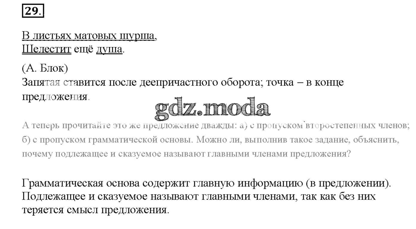 ОТВЕТ на задание № 29 Рабочая тетрадь по Русскому языку 8 класс Львов УМК