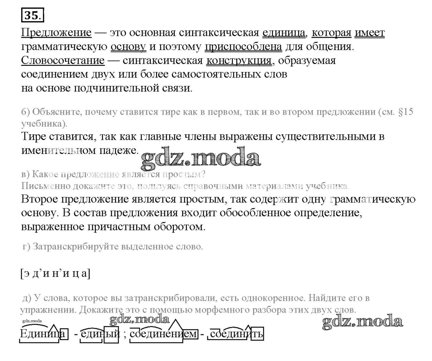 ГДЗ решение к заданию № 35 Русский язык 8 класс рабочая тетрадь Львов В.В. (к уч. Разумовской) Экзамен 2016 ФГОС бесплатно на гдз.мода!