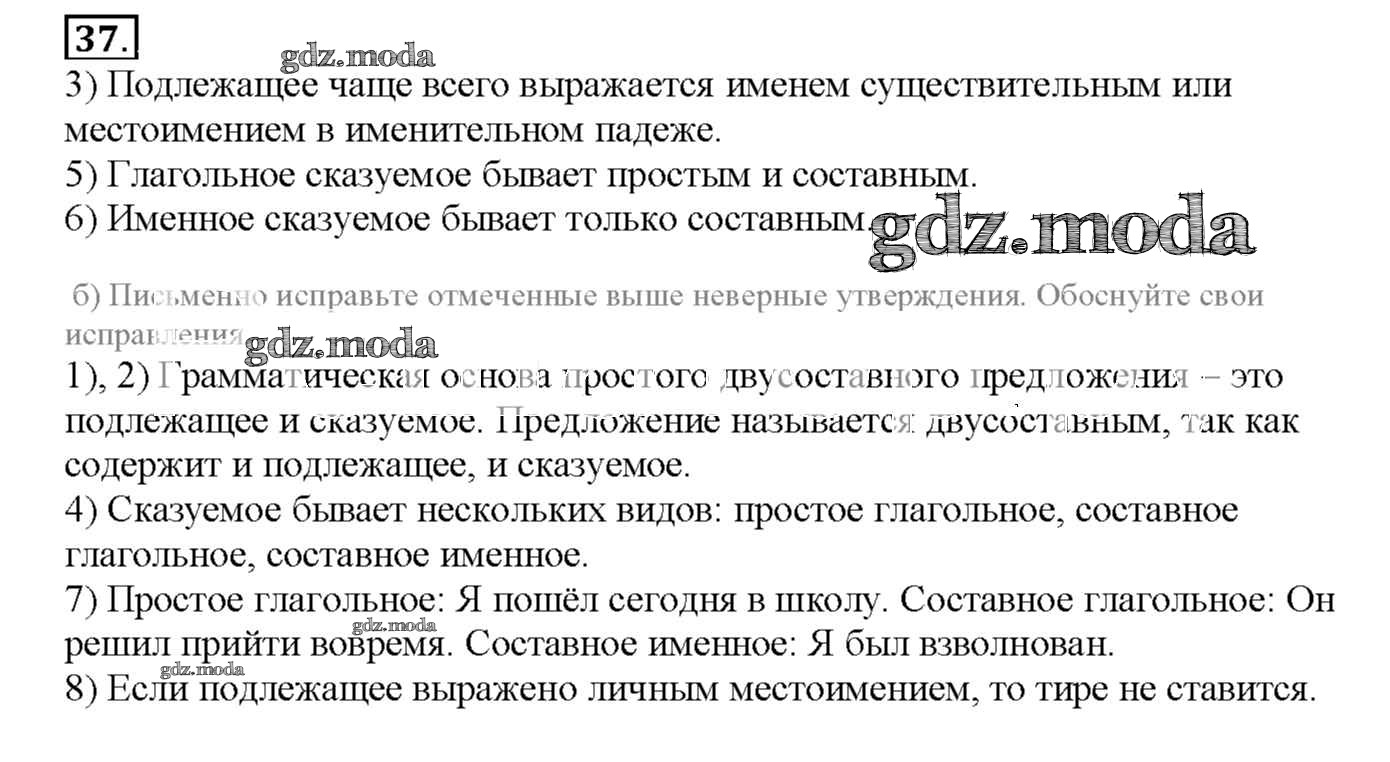 ОТВЕТ на задание № 37 Рабочая тетрадь по Русскому языку 8 класс Львов УМК