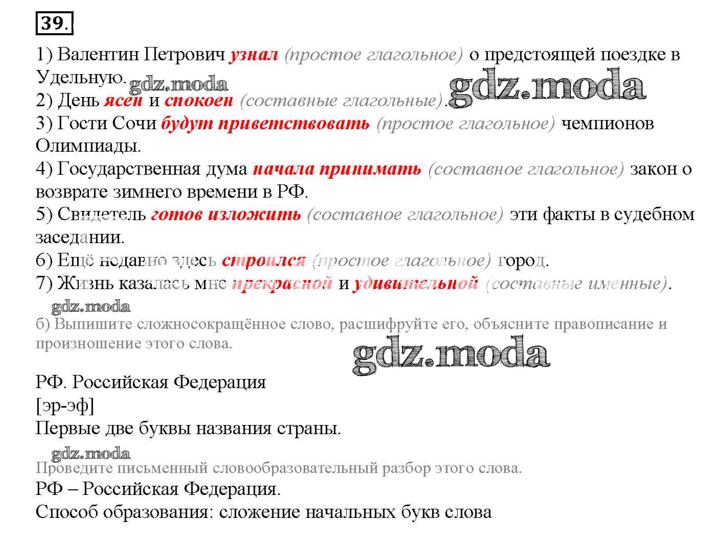 ГДЗ решение к заданию № 39 Русский язык 8 класс рабочая тетрадь Львов В.В. (к уч. Разумовской) Экзамен 2016 ФГОС бесплатно на гдз.мода!