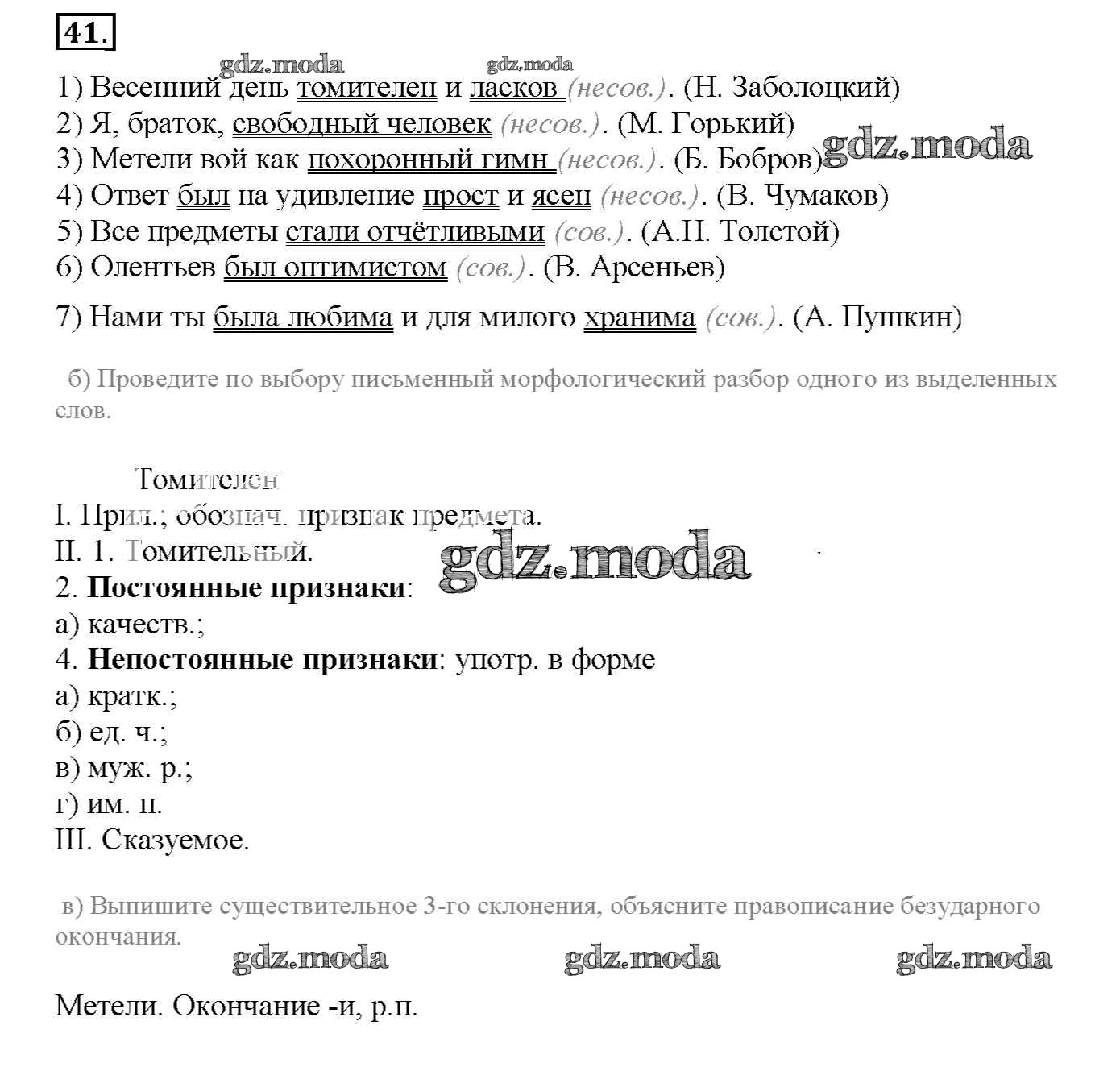 ОТВЕТ на задание № 41 Рабочая тетрадь по Русскому языку 8 класс Львов УМК