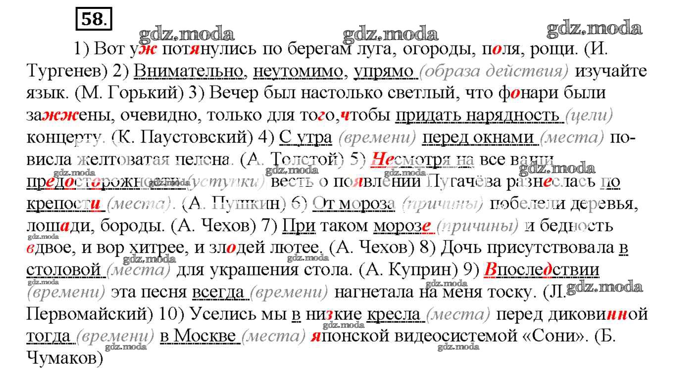 ОТВЕТ на задание № 58 Рабочая тетрадь по Русскому языку 8 класс Львов УМК