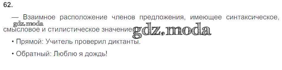 ОТВЕТ на задание № 62 Рабочая тетрадь по Русскому языку 8 класс Львов УМК