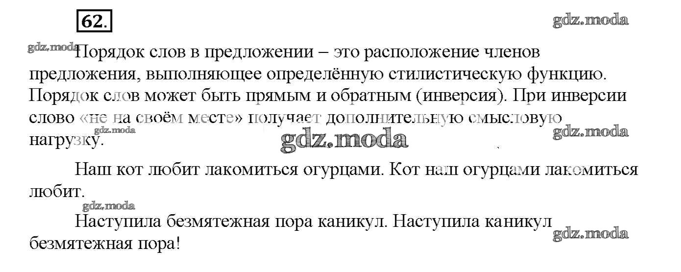 ГДЗ решение к заданию № 62 Русский язык 8 класс рабочая тетрадь Львов В.В. (к уч. Разумовской) Экзамен 2016 ФГОС бесплатно на гдз.мода!