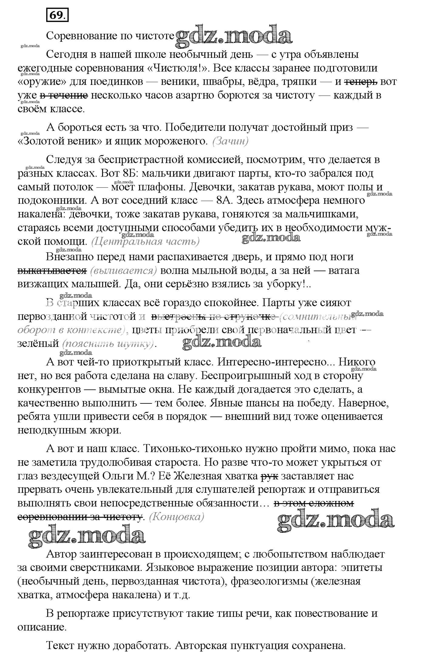 ГДЗ решение к заданию № 69 Русский язык 8 класс рабочая тетрадь Львов В.В. (к уч. Разумовской) Экзамен 2016 ФГОС бесплатно на гдз.мода!