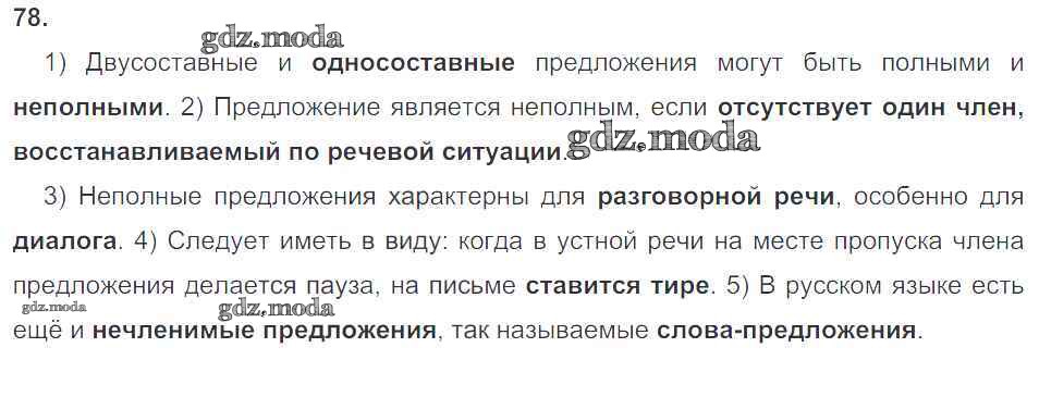 ОТВЕТ на задание № 78 Рабочая тетрадь по Русскому языку 8 класс Львов УМК