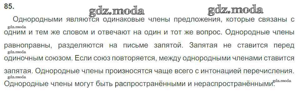ОТВЕТ на задание № 85 Рабочая тетрадь по Русскому языку 8 класс Львов УМК