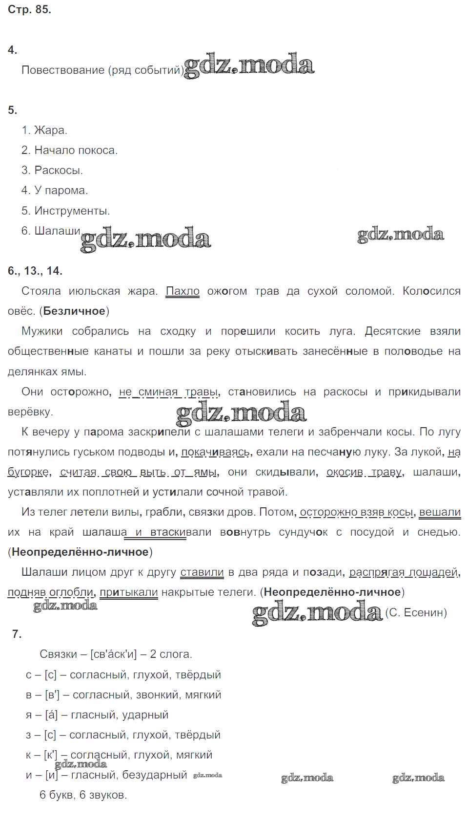 ОТВЕТ на задание № 85 Комплексный анализ текста (Рабочая тетрадь) по Русскому языку 8 класс Малюшкин