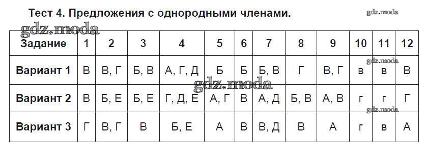 ГДЗ решение к заданию № Тест №4. Предложения с однородными членами Русский язык 8 класс Тестовые задания Малюшкин А.Б. Сфера 2019 ФГОС бесплатно на гдз.мода!
