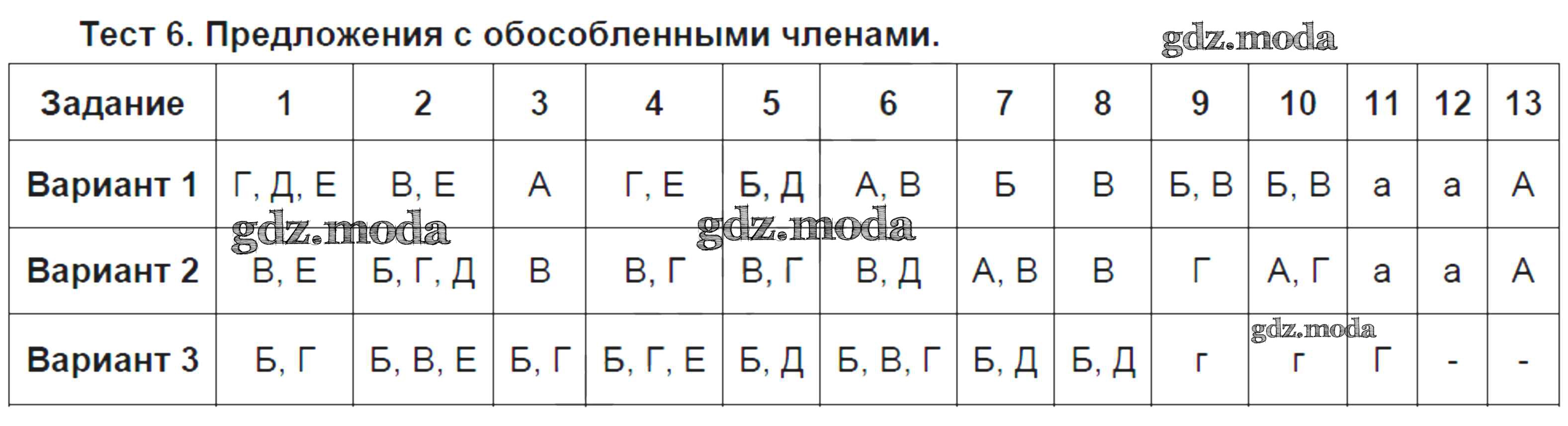 ОТВЕТ на задание № Тест №6. Предложения с обособленными членами Тестовые задания по Русскому языку 8 класс Малюшкин
