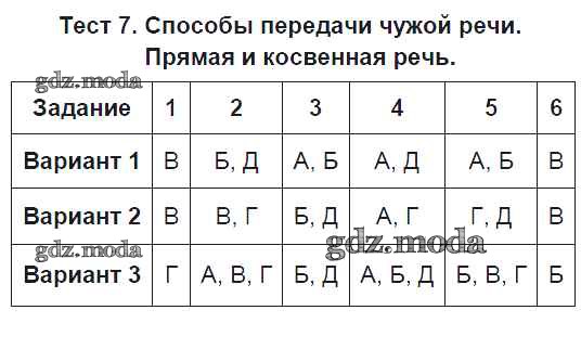 ОТВЕТ на задание № Тест №7. Способы передачи чужой речи. Прямая и косвенная речь Тестовые задания по Русскому языку 8 класс Малюшкин