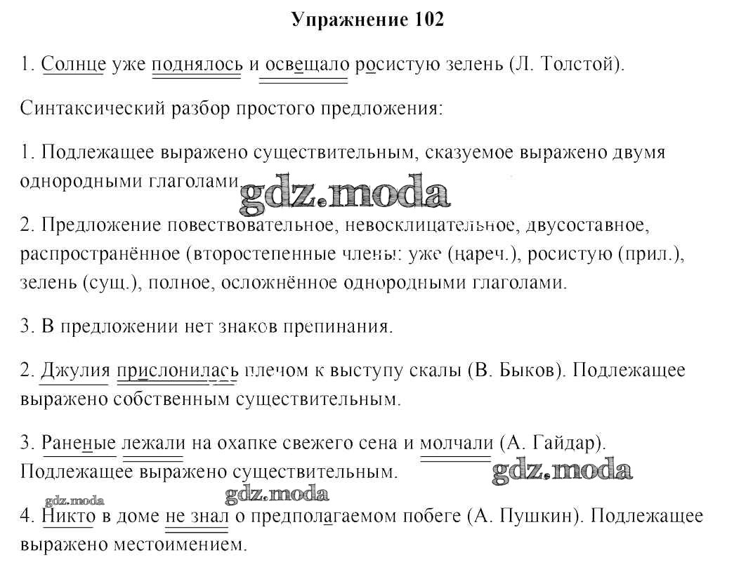ОТВЕТ на задание № 102 Учебник по Русскому языку 8 класс Мурина