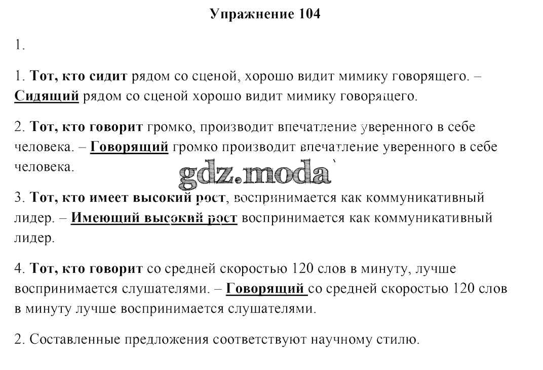 ОТВЕТ на задание № 104 Учебник по Русскому языку 8 класс Мурина